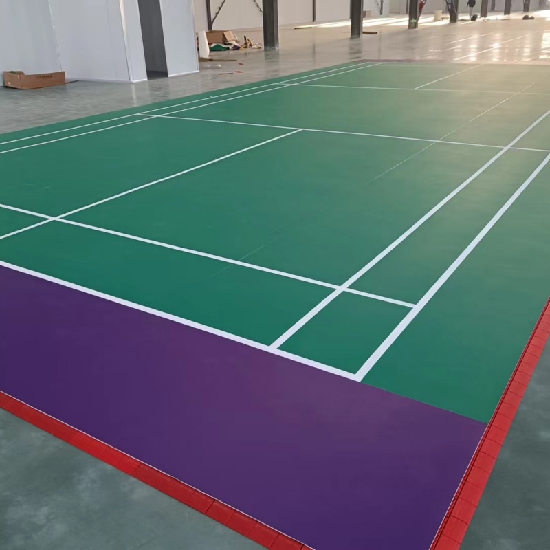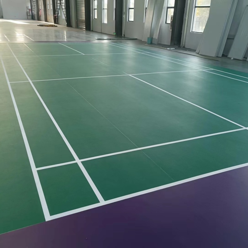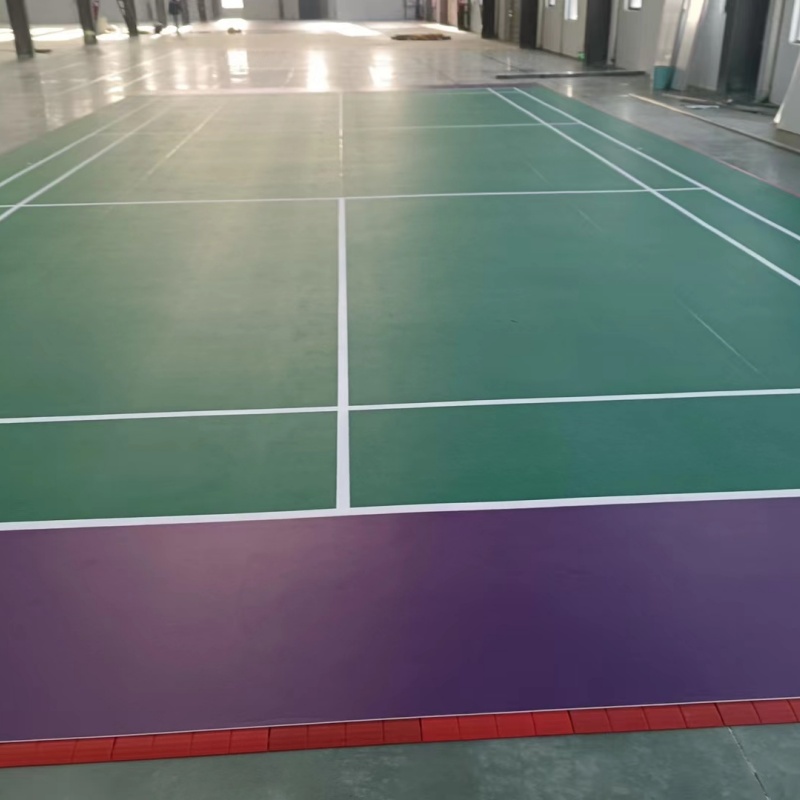 PVC羽毛球场地胶对地面条件有着近乎严苛的要求,这是保障后续施工质量与场地寿命的核心前提。首先是地面硬度与平整度,基础地面需坚硬不起砂,若为水泥地,需用固化剂强化处理;用2米直尺检测,地面缝隙不得超过2毫米,坑洼处必须以自流平水泥细致找平,任何一处平整度的疏漏,都可能成为日后地胶起鼓的隐患。